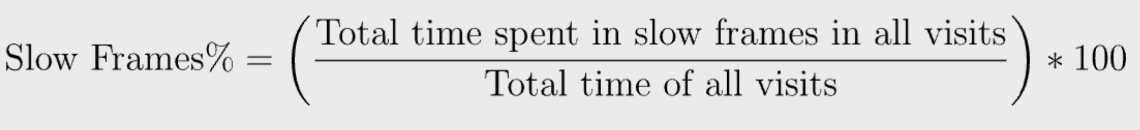 - e.g. if a user spent a total of 10s on a screen, within which they experienced a total of 1s in slow frames, this screen will have a slow Frames % of (1/10) = 10%