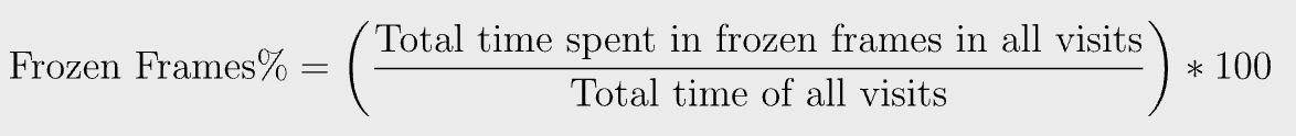 - e.g. if a user spent a total of 10s on a screen, within which they experienced a 2s frozen frame, this screen will have a Frozen Frames % of (2/10) = 20%