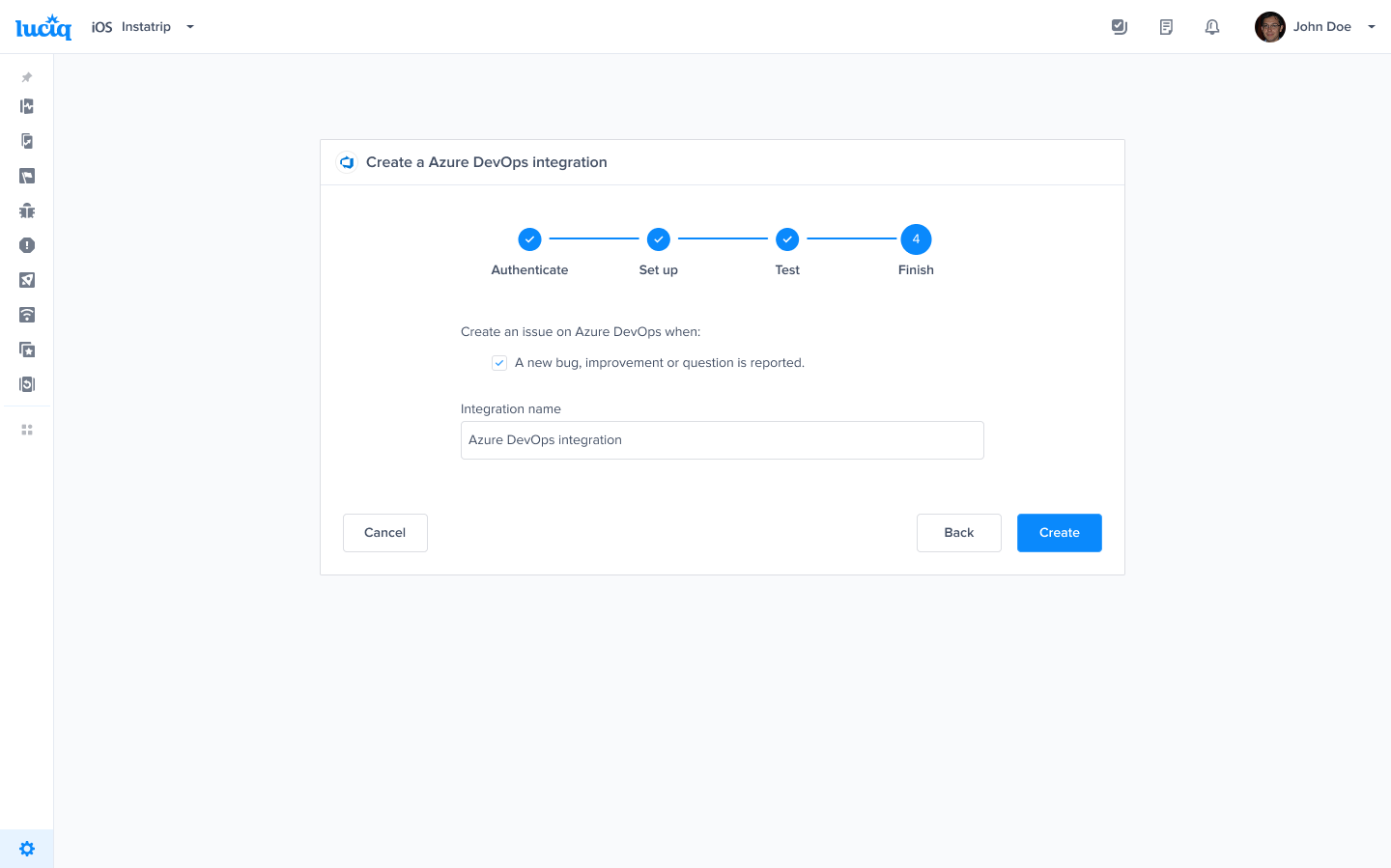 Navigate to Luciq's integration page found within your Settings.